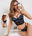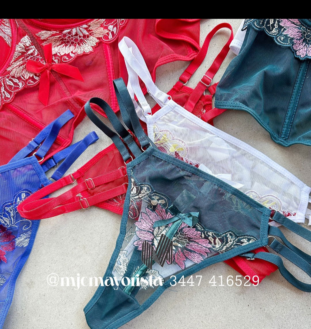 Set de corset bordado de microtul y push up con detalles de tira al frente con aro y varillas, breteles y contorno regulable + Less de encaje con doble tira regulable. Talles y colores a elección